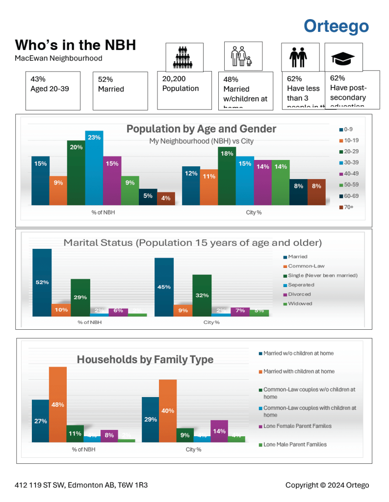 Get to know the community with comprehensive neighbourhood insights and permit history. Curious about the people, homes, and happenings in your neighbourhood? Our neighbourhood report provides you with valuable insights into your community’s demographics and property activity. With this report, you’ll discover:
